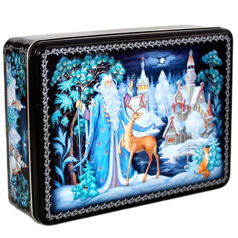 Сладкий новогодний подарок в жестяной упаковке весом 800 грамм