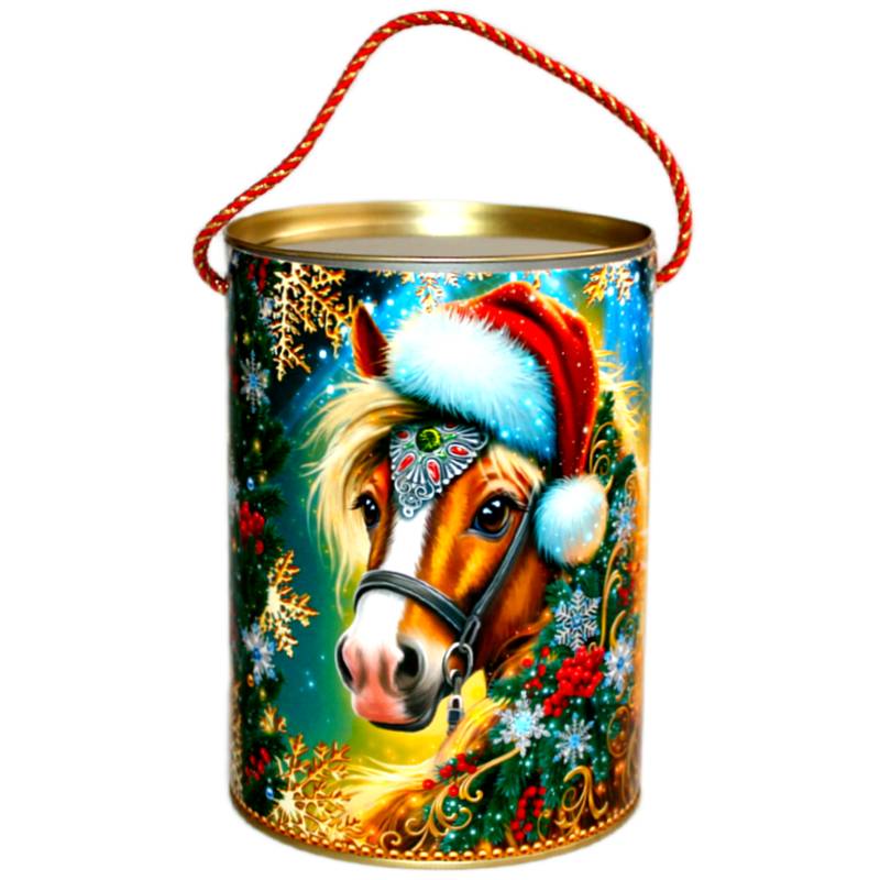Сладкий новогодний подарок в жестяной упаковке весом 650 грамм
