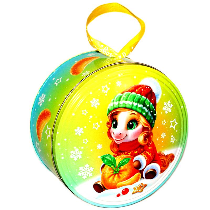 Сладкий новогодний подарок в жестяной упаковке весом 400 грамм