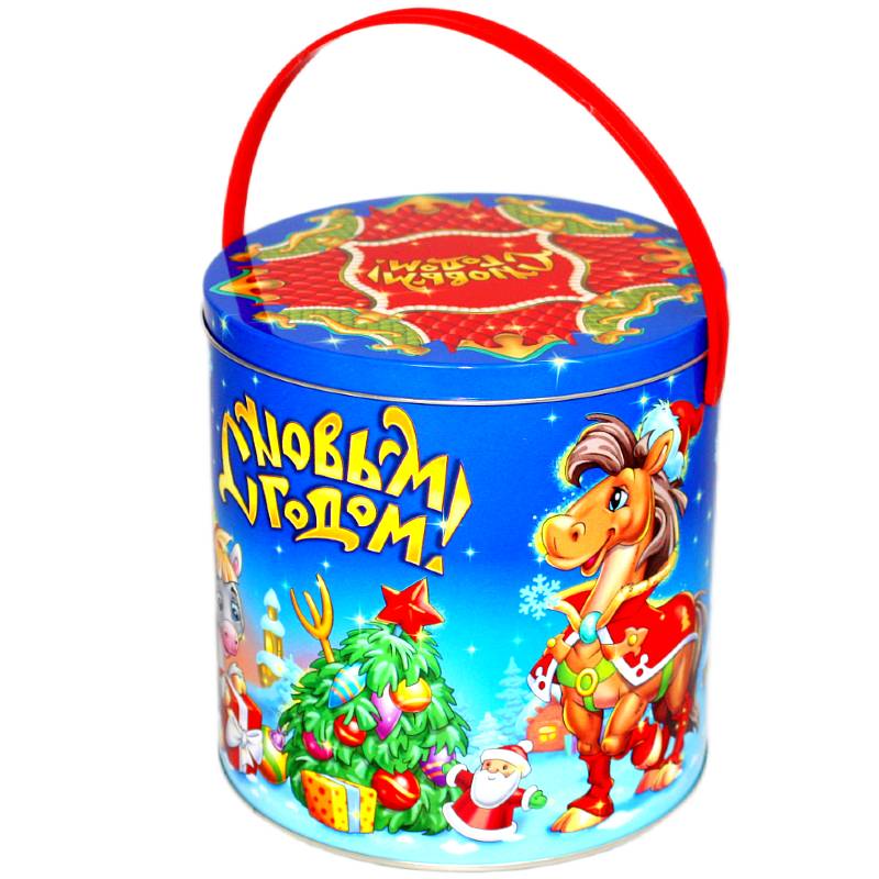 Сладкий новогодний подарок в жестяной упаковке весом 1000 грамм