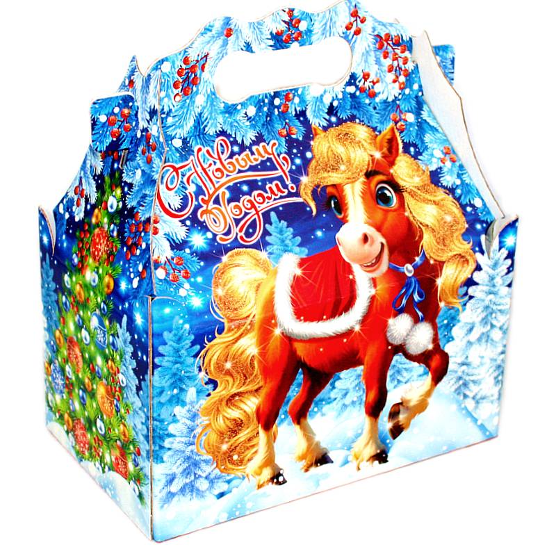 Детский новогодний подарок в картонной упаковке весом 1000 грамм