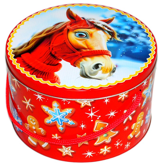 Сладкий новогодний подарок в жестяной упаковке весом 610 грамм