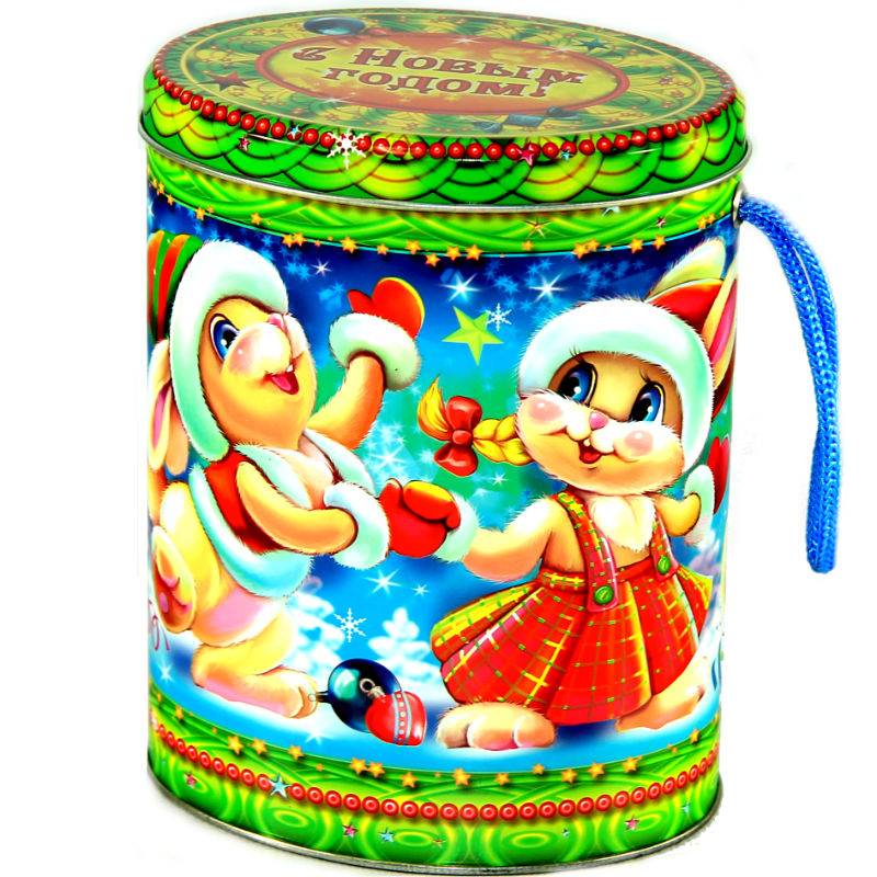 Сладкий новогодний подарок жестяной упаковке весом 300 грамм