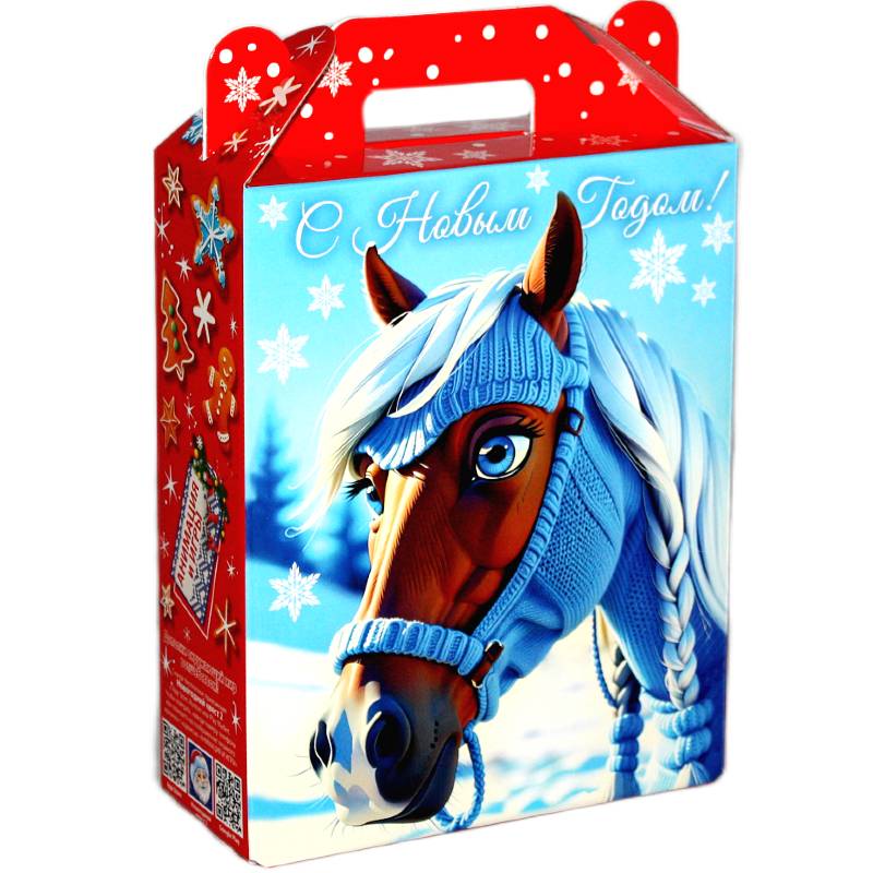Сладкий новогодний подарок в картонной упаковке весом 950 грамм