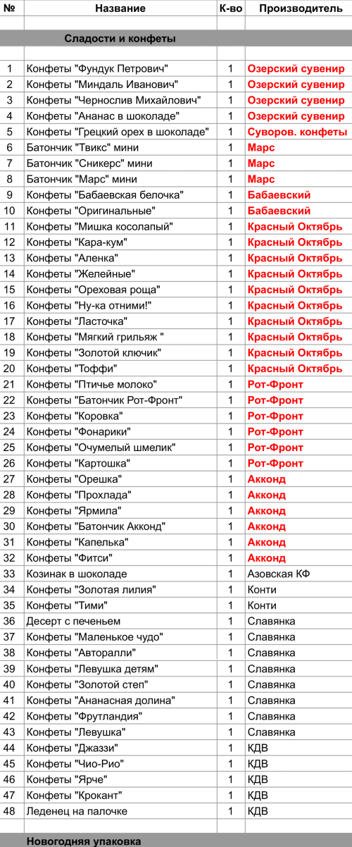 Опубликовано в Составы подарков